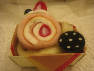 再來做第二個甜點:OREO餅乾!滿成功的~看起來真好吃!好想咬一口喔!但這時,慘烈的事發生了,想做蛋糕塔,特製針卻斷了 冏 只好再買一個了!今天買了好多羊毛氈~要來狂戳了~