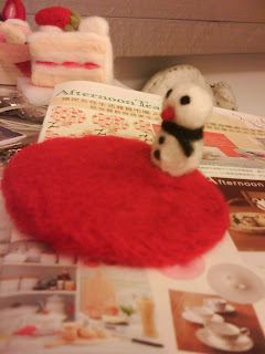 妳比我有耐心多啦! 我看到這麼可愛的成品只會覺得"我還是花錢買好了"! ^^;;呵呵呵, 先幫我肚子裡的小牛美眉謝謝妳囉--我今天產檢, 照到了傳說中的"3條線", 所以應該是個小美眉唷! 太棒了有可愛的蛋糕耶~~~後來water只好載我去鶯歌買一對形狀相同的湯匙, 哈哈哈!