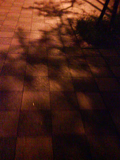 昏黃的窗外景色,其實夕陽有一顆,但手機拍不起來。反倒是晚上的地面,樹影搖晃之下的透光,一清二楚。到底是黑暗的清晰,還是漸暗的模糊,一時也看的出神了。